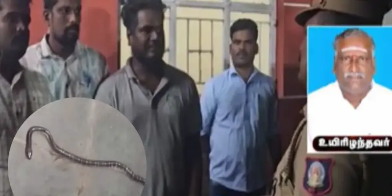 - விசாரணையில், இன்சூரன்ஸ் பணத்தை பெறுவதற்காக மகன்களே திட்டமிட்டு தந்தையை பாம்பை ஏவி கொலை செய்தது அம்பலமானது.