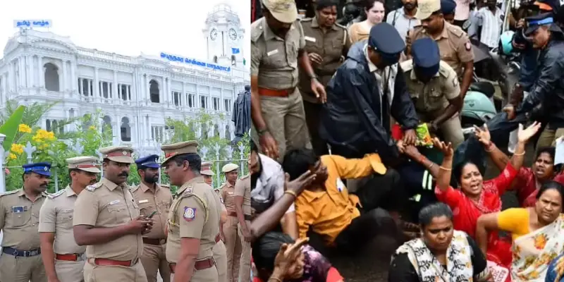 - இந்த தகவல் முன்கூட்டியே காவல்துறைக்கு தெரியவந்ததைத் தொடர்ந்து, 500-க்கும் மேற்பட்ட போலீசார் பாதுகாப்பு பணிக்காக குவிக்கப்பட்டனர். காலை 10 மணியளவில் 200-க்கும் மேற்பட்ட தூய்மை பணியாளர்கள் பேரணியாக செல்ல முயன்றபோது, போலீசார் அவர்களை தடுத்து கைது நடவடிக்கையில் ஈடுபட்டனர்.